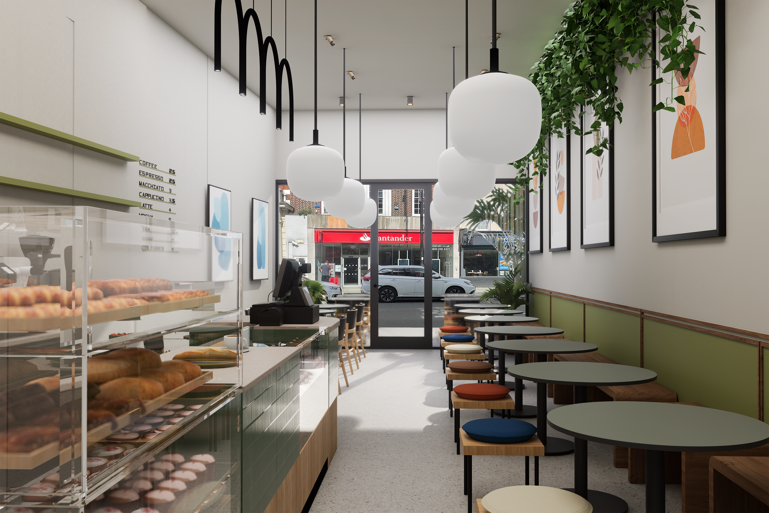 The interior design of Coffee & More in Barnet, London, is a contemporary interpretation of a Greek coffee bakery. The concept focuses on simplicity, warmth, and everyday use, creating a space that supports both quick visits and more relaxed moments.